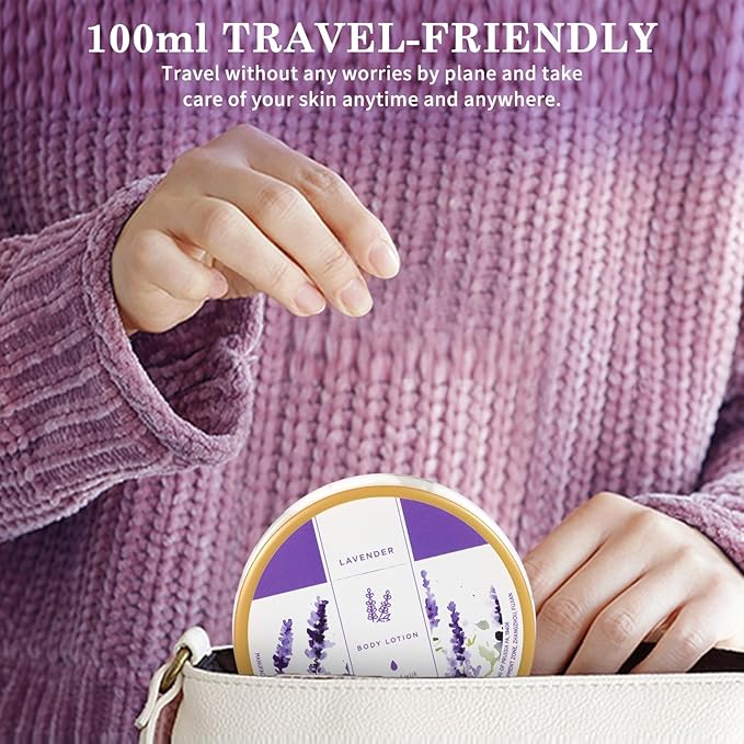 - TRAVEL-FRIENDLY: This Lavender Body Lotion is designed for travel convenience. It has a capacity of 100ml and is small and exquisite, making it easy to carry in a bag or suitcase. You can travel without the burden of flying and take care of your skin at any time. It is a considerate travel companion.