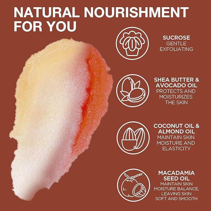 - SWEET BROWN SUGAR SCENT: The scent of Brown Sugar Body Scrub is warm and inviting, with a rich caramel-like aroma with a hint of sweetness, making you feel comforted and indulged.