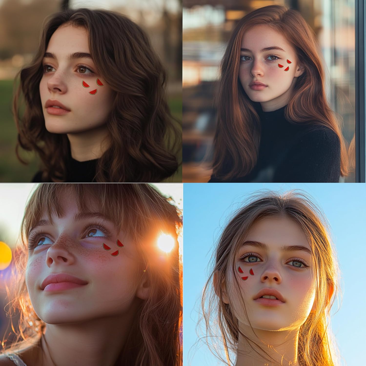10pcs Watermelon Face Makeup Patches, Temporary Facial Tattoos for Adults, Water Resistant