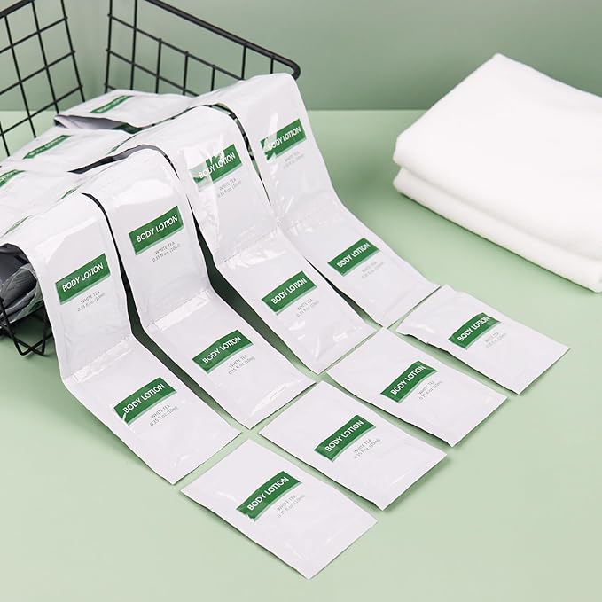- Bulk for Nice Value: 200 piece set of 0.35 oz/10ml travel size body lotion bulk; Neatly packaged,easy to tear open, very convenient, ideal travel size disposable toiletries for guests, family use, vacation rental use
