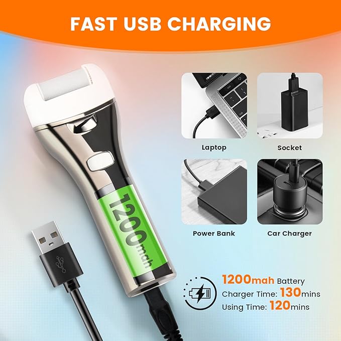 - 【Powerful, Safe & 3 Speeds Adjustable】Electric foot callus remover with three different quartz sand grinding heads and three working modes - a low speed of 1700 r/pm, a normal speed of 1900 r/pm and a high speed of 2100 r/pm - that are suitable for tackling various types of dead skin and calluses. Its speed can be easily controlled based on your preferences, making it more convenient and safer to use