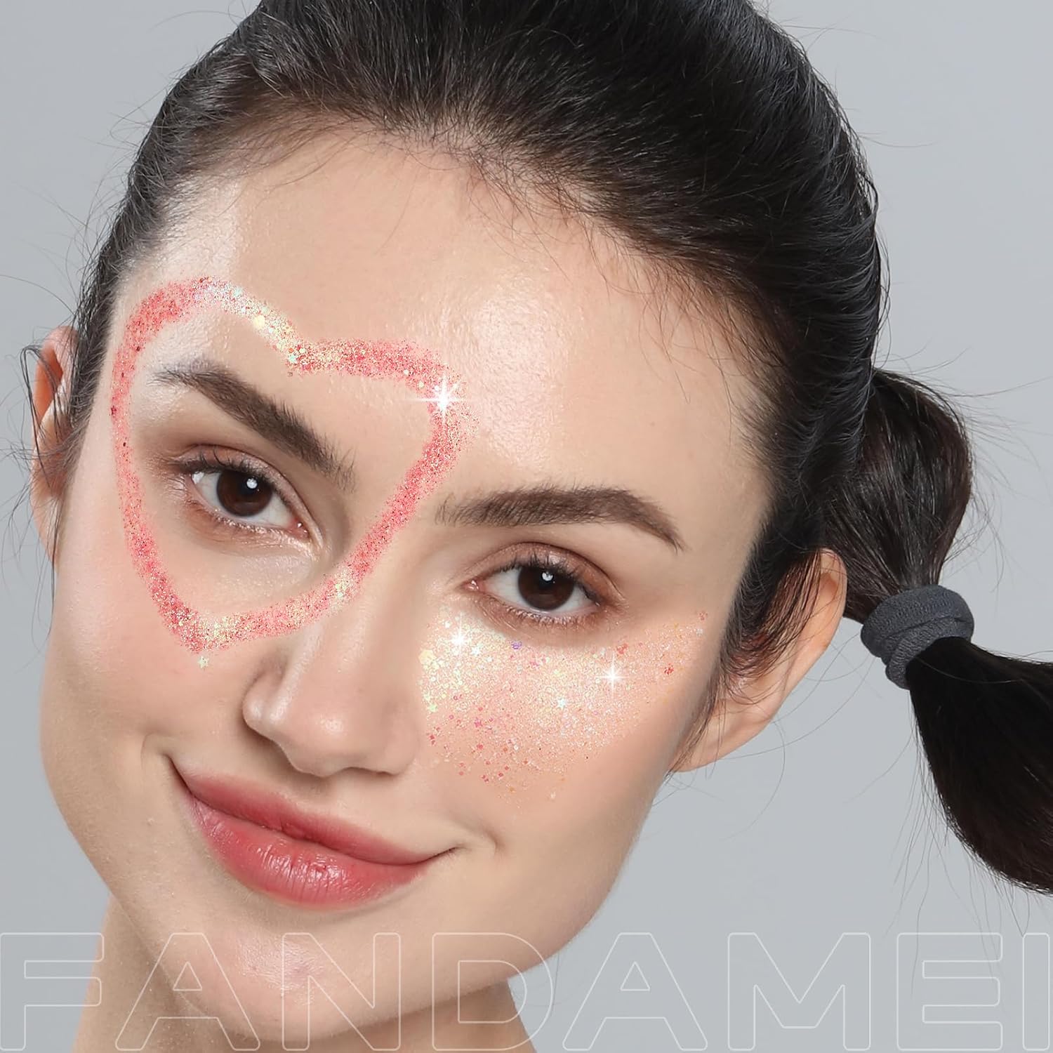 FANDAMEI Face Glitter, Body Glitter for Women, 2PCS 8 Colors Glitter Gel for Face, Hair Glitter for Kids, Fairy Rave Mermaid Makeup