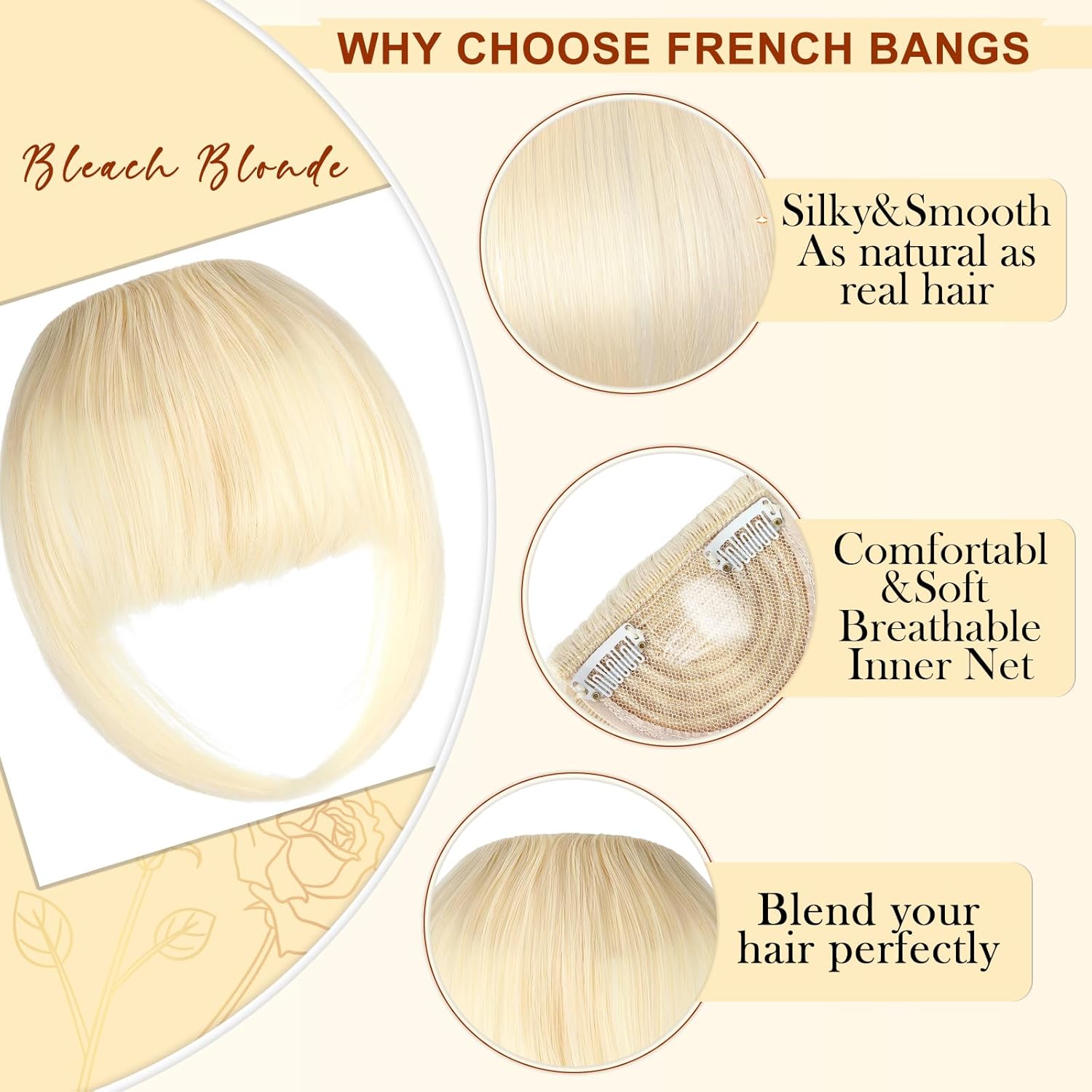Natural Clip on Bangs and Hair Extensions, Faux Blonde French Bangs with Temples for Daily Wear