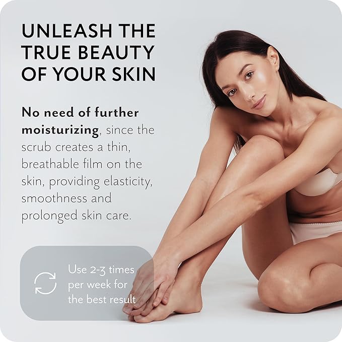 - ๐ฅฅ Powerful Plant-Based Oil Complex: Body scrubs for women contains valuable oils like coconut, sweet almond, avocado, and shea butter. Coconut oil nourishes the skin, retains moisture, and accelerates cell regeneration. Sweet almond oil deeply moisturizes and restores the lipid barrier. Avocado oil reduces inflammation, while shea butter enhances skin firmness and elasticity, slowing down the aging process.