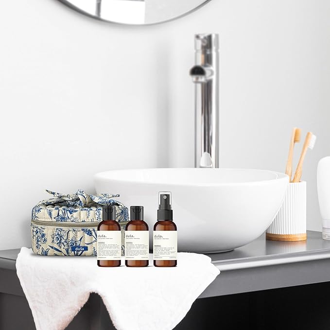 Dusa Grapefruit Gift Set: Room Spray Grapefruit Fragrance (2 oz), Premium Hydrating Hand Cream (2 oz), Soothing Hand Soap & Toile de Jouy Makeup Pouch – Ideal Luxurious Gift for Mothers Day