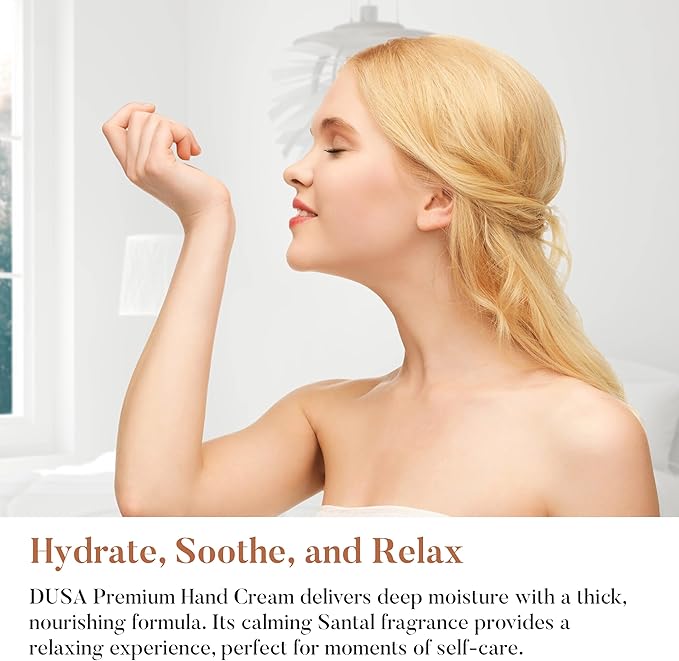 - ALL NATURAL HAND CREAM: Experience ultimate hydration with DUSA's hand cream, specially formulated for extremely dry hands. Our rich and creamy texture penetrates deeply to nourish and ehance softness, leaving your skin feeling rejuvenated and smooth. Say goodbye to dryness and hello to velvety soft hands with the hand cream for your skincare routine.
