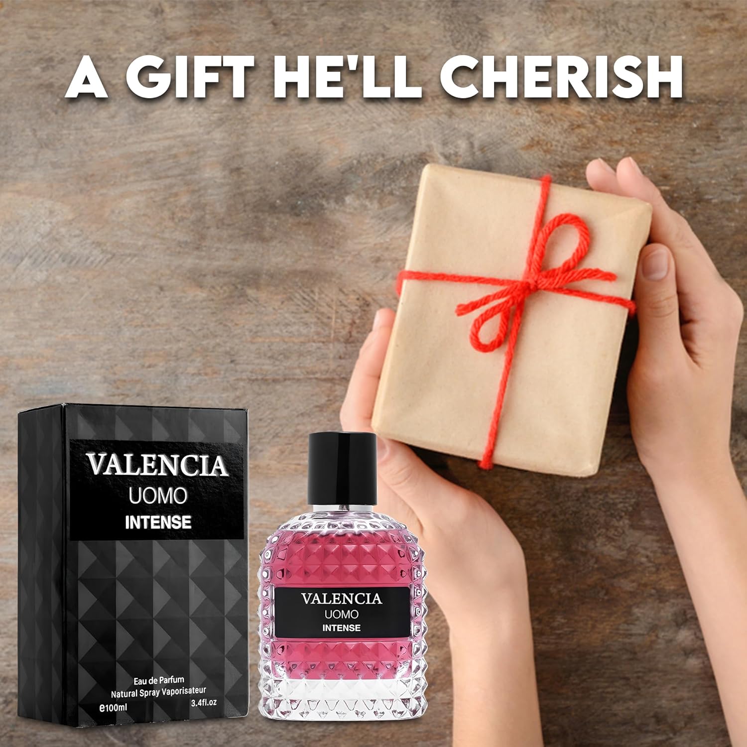 Valencia UOMO Intense Sensual Woody Fragrance for Men | Long Lasting Cologne Aromatic Scent, Eau de Parfum Natural Spray - Great Holiday Gift, 3.4 Fl Oz/100 Ml