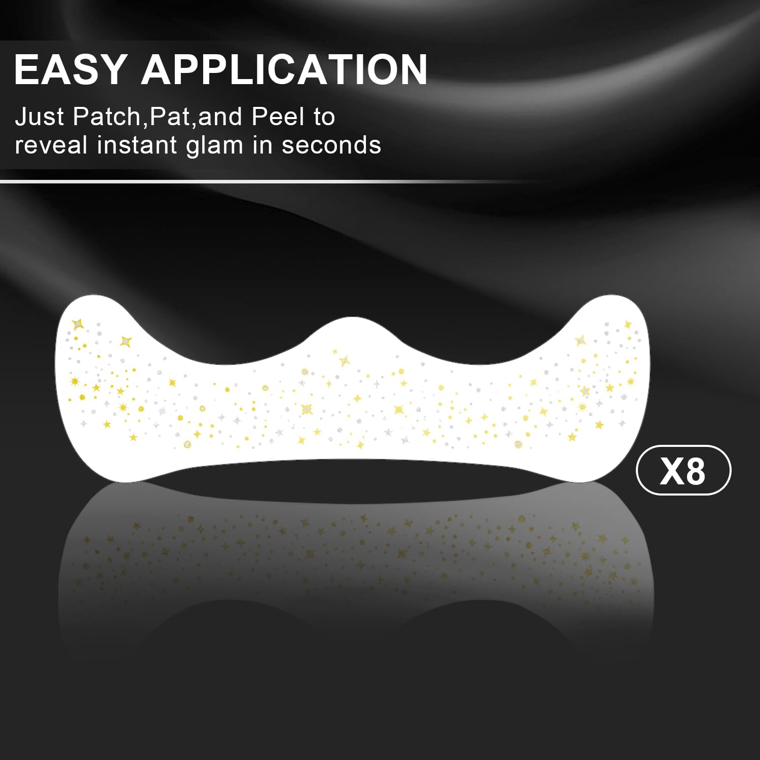 - Easy to wear: Before wearing, tear off the transparent adhesive paper and stick it on face, take care to dampen the patch with a wet towel, tear off the backing paper after seconds and a natural glitter will appear.