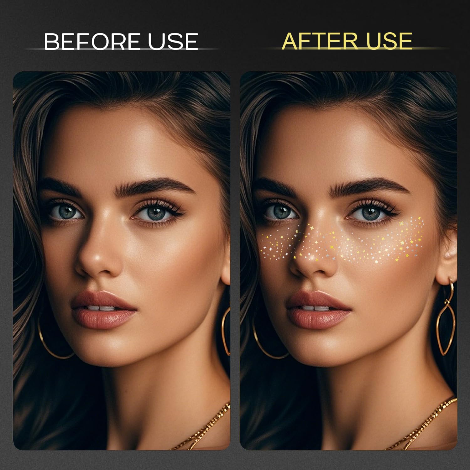 - Gold and silver glitter Freckles: Our glitter freckles feature a stunning gold-silver dual-tone glitter star and freckled design, adding a touch of glamour and sparkle to your look.
