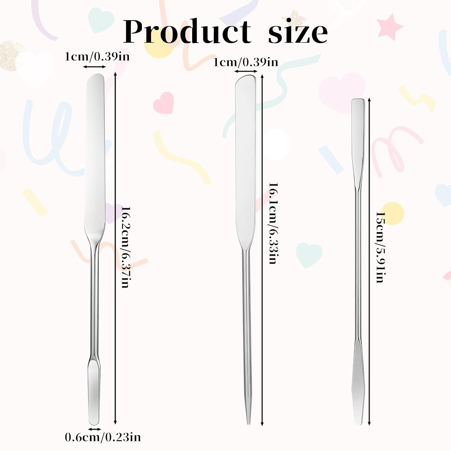 - 【Versatile Design】This makeup spatula set includes three different spatulas, each with unique specifications to meet various cosmetic needs. Whether you're applying foundation, blending eyeshadow, or mixing lip colors, our cosmetic spatula set has you covered.