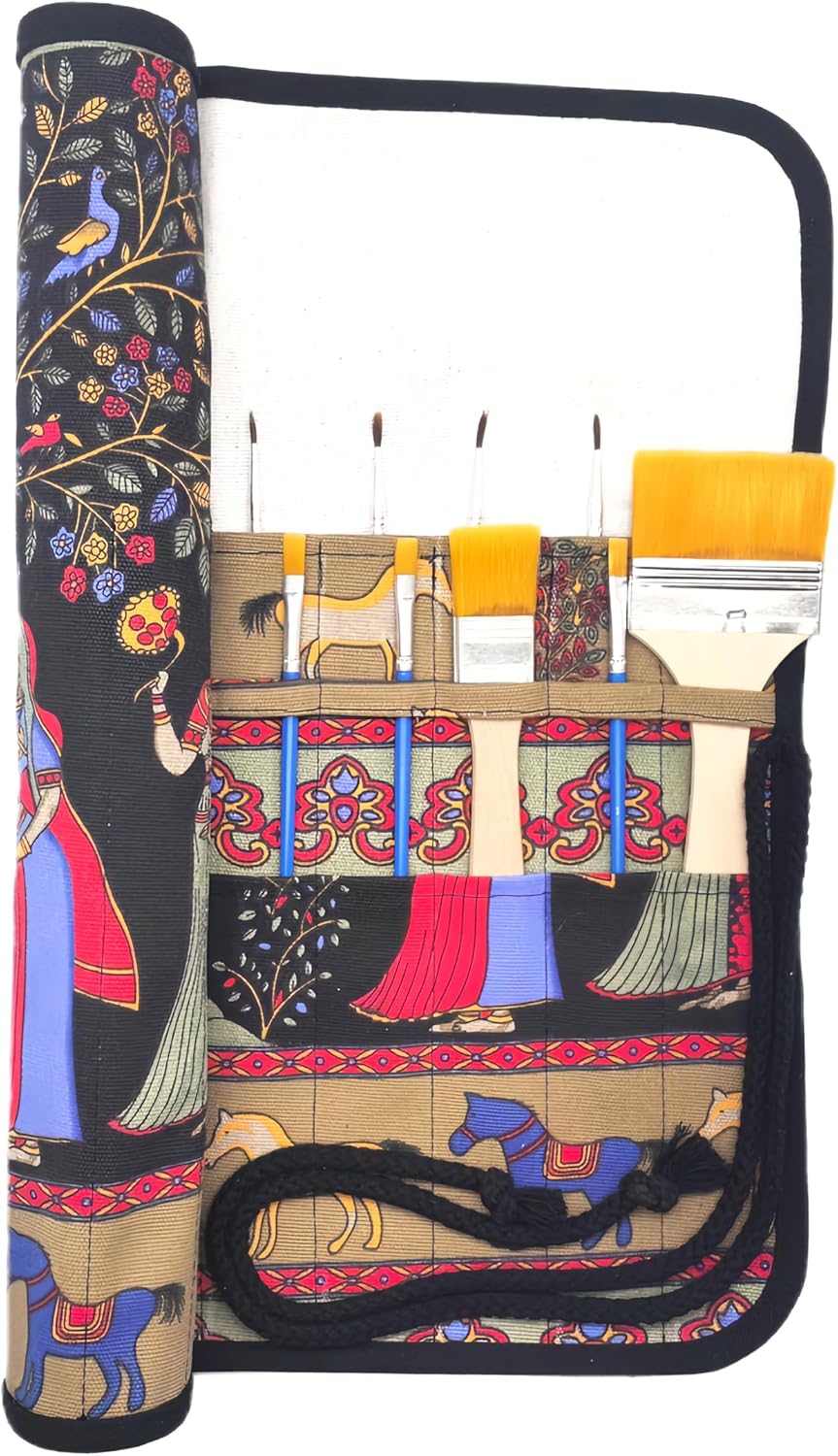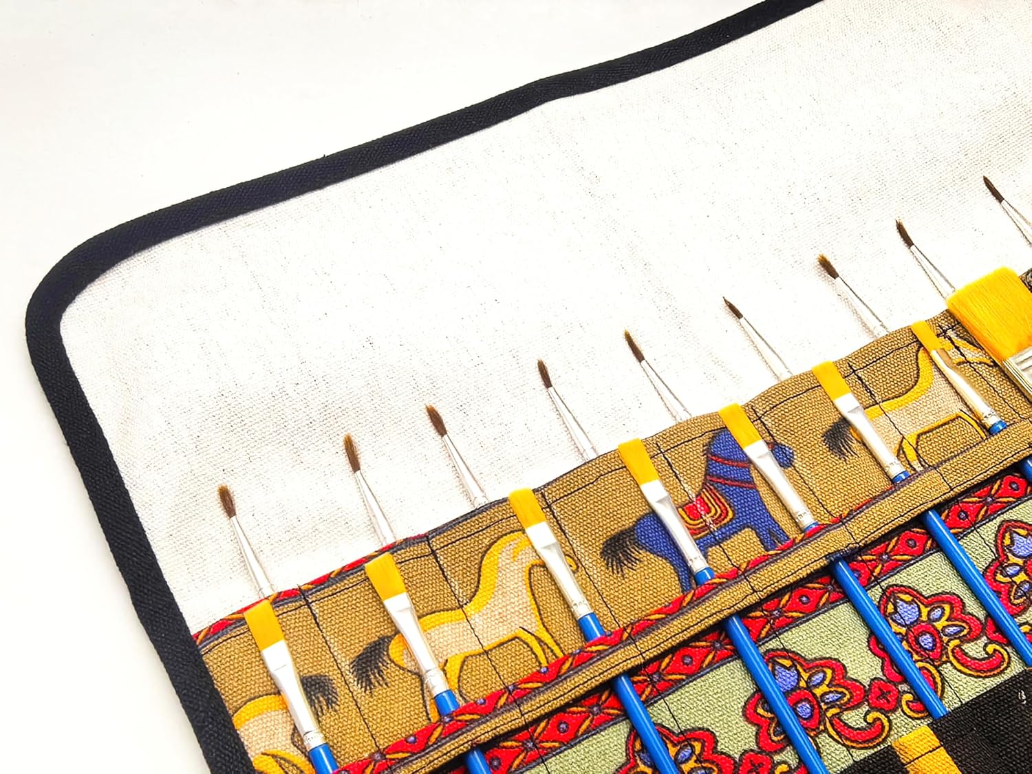 - Quality Canvas Brush Holder: Durable, light and soft, this convenient holder is an essential accessory for all levels of artists to keep their art paint brushes, makeup brushes, small paint brushes for crafts, tiny paint brushes, mop brush for acrylic painting, small paint brush, drawing pens, pens,paint brushes for acrylic painting, markers, and art tools completely organized, protected, ready for use and cleaning.