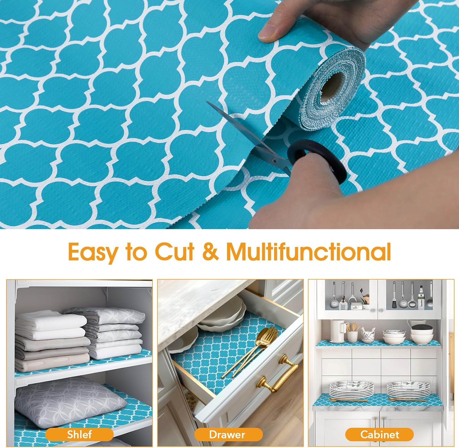 - Easy to Use and Clean: Shelf liner is non-adhesive and reusable. Just measure the size you need, cut it according to the size and place. If there are stains or liquids on the surface, just wipe it with a damp cloth and it will be clean immediately.