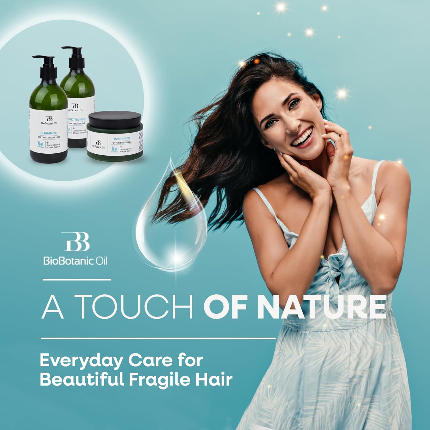 - Bio Botanic Range for thin, sparse and brittle hair:The Bio Botanic Oil Range is your go-to solution for strengthening and revitalizing weak, fragile hair. Cleanse with the Shampoo to fortify and nourish, hydrate with the Magic Conditioner for softness and elasticity, and restore strength with the Intensive Repair Hair Mask. Infused with Organic Castor & Babassu Oils, this trio helps reduce breakage, boost density, and promote fuller, healthier-looking hair.