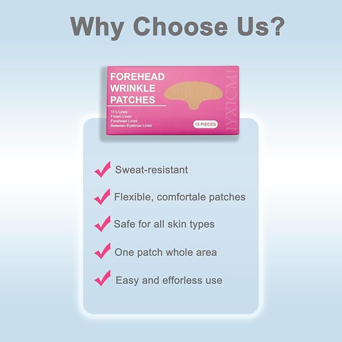 - [Suitable for All Skin Types]: IyxicmI frown line patches are suitable for those who need to solve the problem of fine lines & wrinkles. Formulated with care, they are suitable for every skin type, from sensitive to oily, and are especially beneficial for aging skin when used as directed.