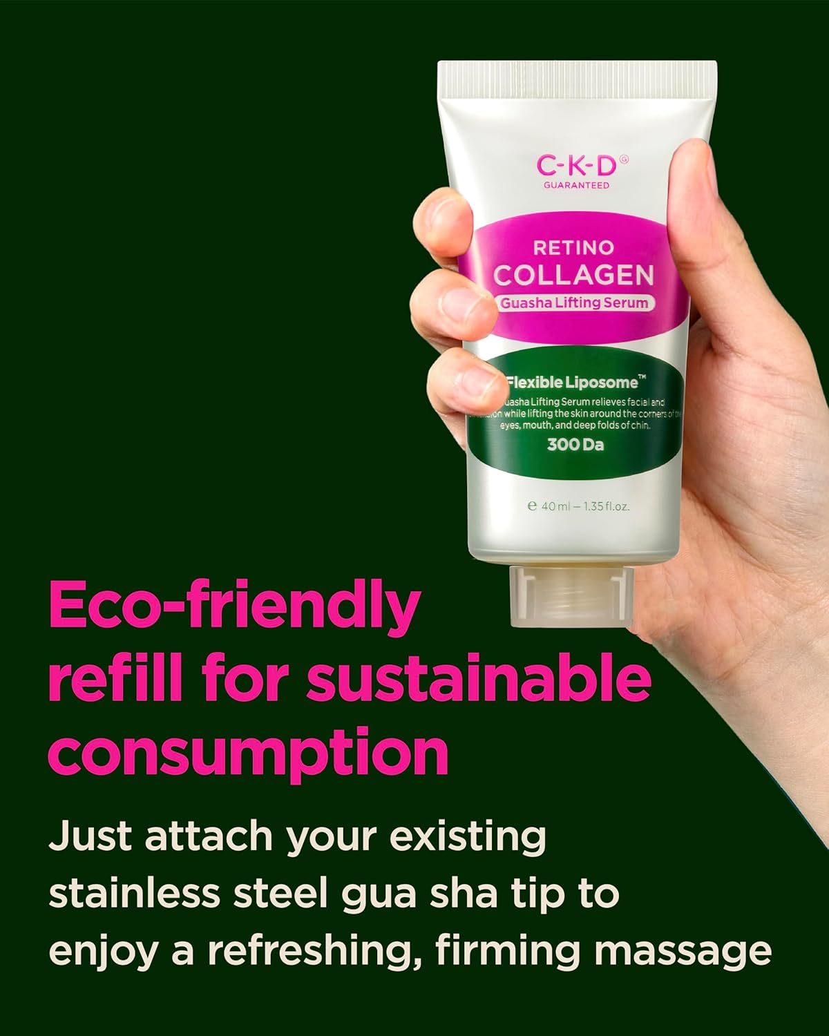 - LIFTING FACIAL SERUM WITH COLLAGEN & RETINOL: CKD Guasha Lifting Facial Serum [Refill] features small molecular 300-dalton collagen and retinal to boost skin elasticity, firm sagging areas, and reduce wrinkles. Its potent formula enhances collagen production for a youthful, lifted appearance