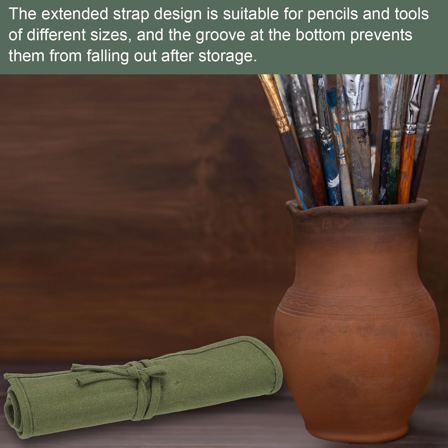 - SPECIAL DESIGNED: The extended strap design is suitable for pencils and tools of different sizes, and the groove at the bottom prevents them from falling out after storage. Double storage compartments can store more art tools.
