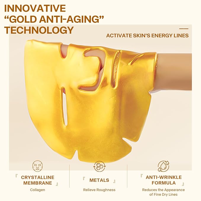 24K Gold Collagen Infusion Face Mask, Layered Patch Mask, Deep Hydrating Moisturizing Collagen Facial Mask, Women's Skin Care, No-Cleaning Sleeping Face Mask (Package of 4)