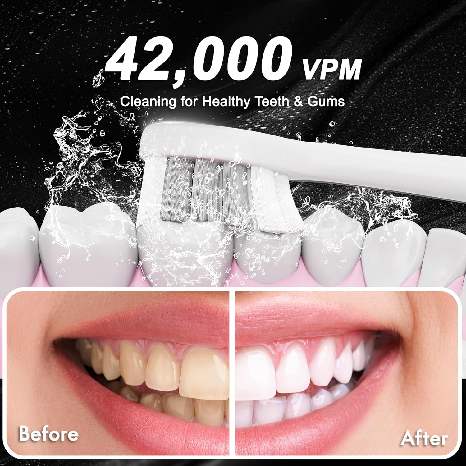 - Advanced Sonic Cleaning Power: Powered by a metal-reinforced motor that generates up to 42,000 movements per minute, this toothbrush's advanced sonic technology surpasses traditional electric brushes, effectively dislodging even the most stubborn plaque and food particles for a deep, thorough clean.