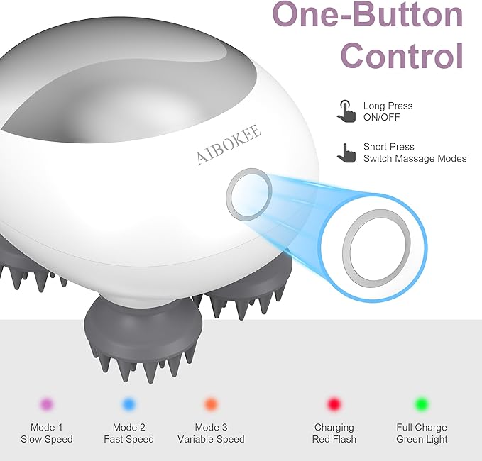 - 【Three Speed Modes 】 Smart Scalp Massager has three modes (low/high/alternative) to choose from for different intensity needs, from gentle to deep kneading massage. You can switch between 6 working modes to get the best scalp massage experience.
