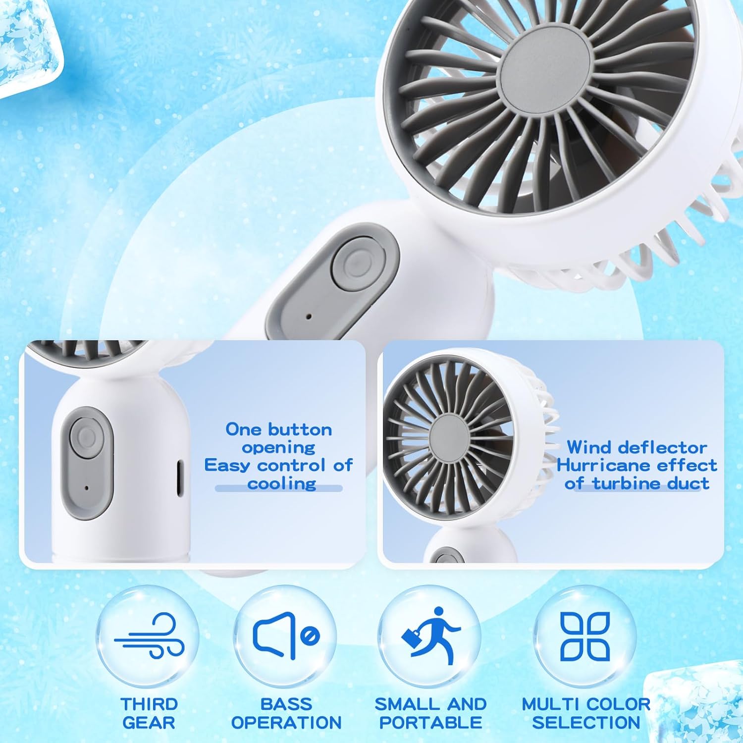 - Durable and User Friendly Design: the small portable fan features blades made from sturdy PP material for thin and evenly distributed breeze; The ABS body, complete with a delicate micro sand texture, provides durability; Also, the non slip handle provides a comfortable and secure grip, even for smaller hands