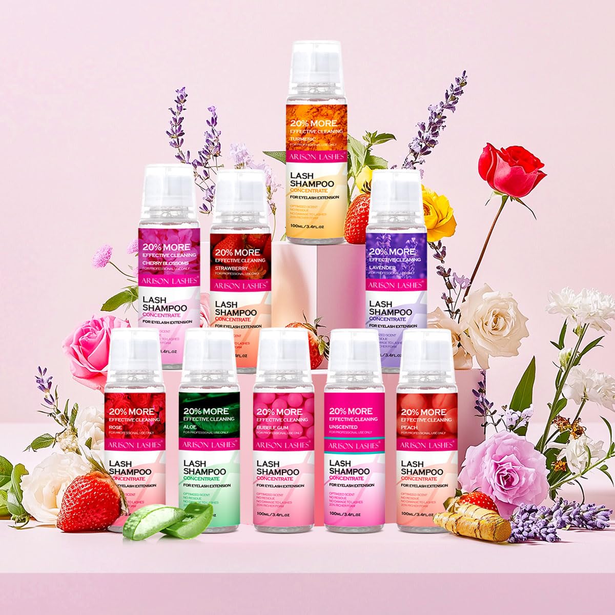 ARISON LASHES Lash Shampoo Concentrate for Lash Extensions 100ML Eyelash Cleanser Concentrate Oil-Free Eyelash Extension Shampoo with Salon Home Care(Bubble gum)