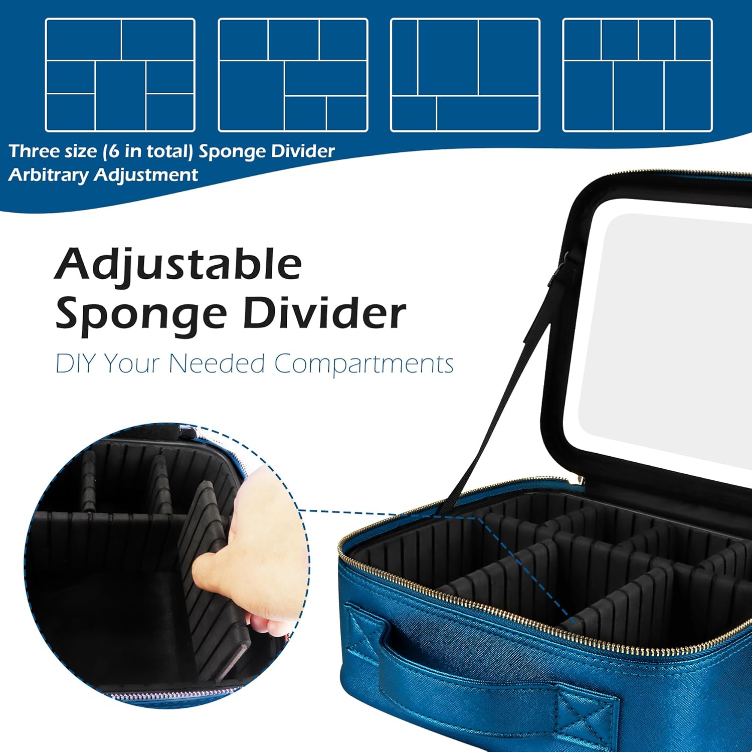 MOMIRA Travel Makeup Bag Cosmetic Bag Makeup Organizer Bag with Lighted Mirror, Adjustable Brightness in 3 Color Scenarios, Waterproof Makeup Train Case, Gift for Women - Phantom Blue