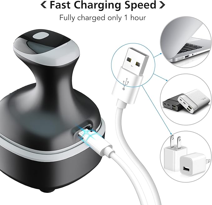 - 【Full Body Massage】: This massager is not only limited to uses on the scalp, it can also give you the ultimate massage experience over the entire body. The head made from silicone, is gentle on the skin, and can rotate 360 degrees, working its magical touch on the human head, neck, arms, stomach and legs.