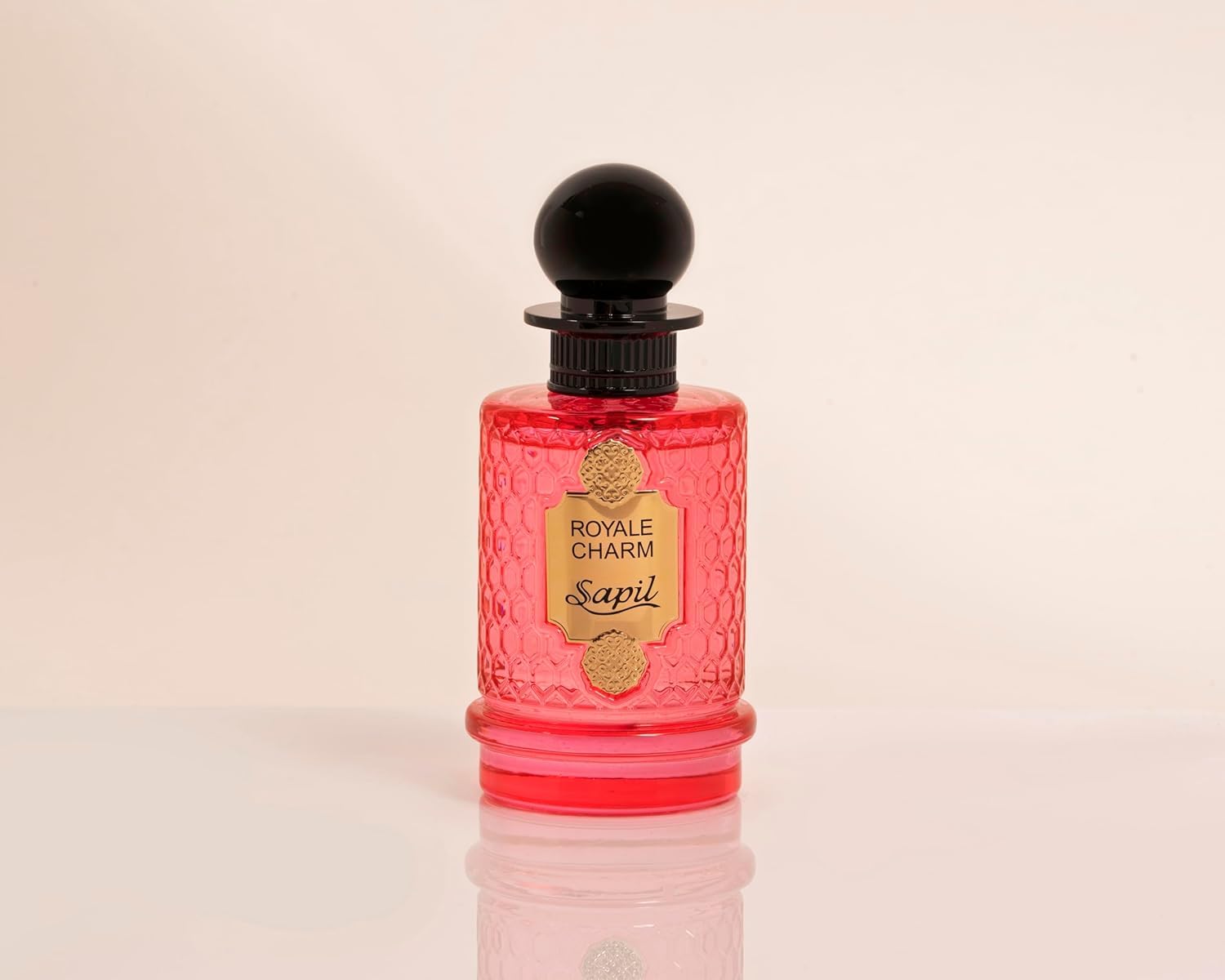 Sapil Royale Charm Unisex Eau De Parfum – Long-Lasting Arabic Perfume with Exotic Fruits, Soft Amber & Vanilla – Citrus Floral Luxury Fragrance for Men & Women – Dubai Perfume – 3.38 oz