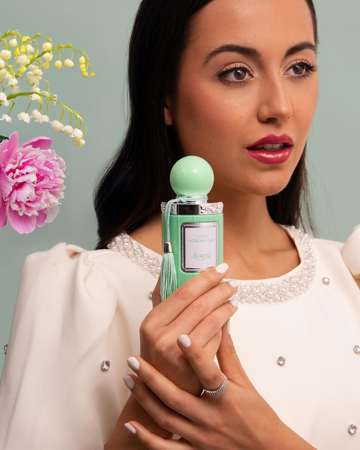 Sapil Yummy Pistachio Oud Unisex Eau De Parfum - Long-Lasting Arabic Perfume with Creamy Hazelnut, Vanilla & Woody Floral Notes - Sweet Dubai Gourmand Fragrance for Men & Women - 3.38 oz