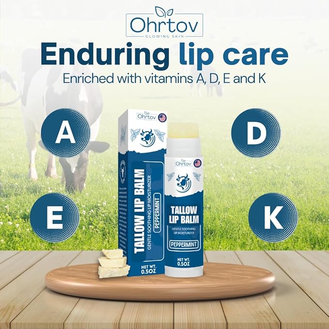- VITAMIN-INFUSED NOURISHMENT: Elevate your lip health with our tallow lip balm enriched with vitamins A, D, E, and K. Sourced from grass-fed beef tallow, this blend promotes overall lip health, nurturing and repairing with essential nutrients.