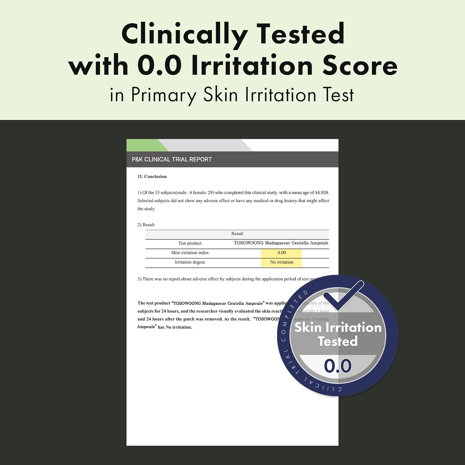 TOSOWOONG Madagascar Centella 86% Ampoule with 860,048ppm Centella Asiatica, Soothing, Calming, Facial Serum for face, for All Skin Types, Korean Skin Care, 100ml, 3.38 fl.oz.