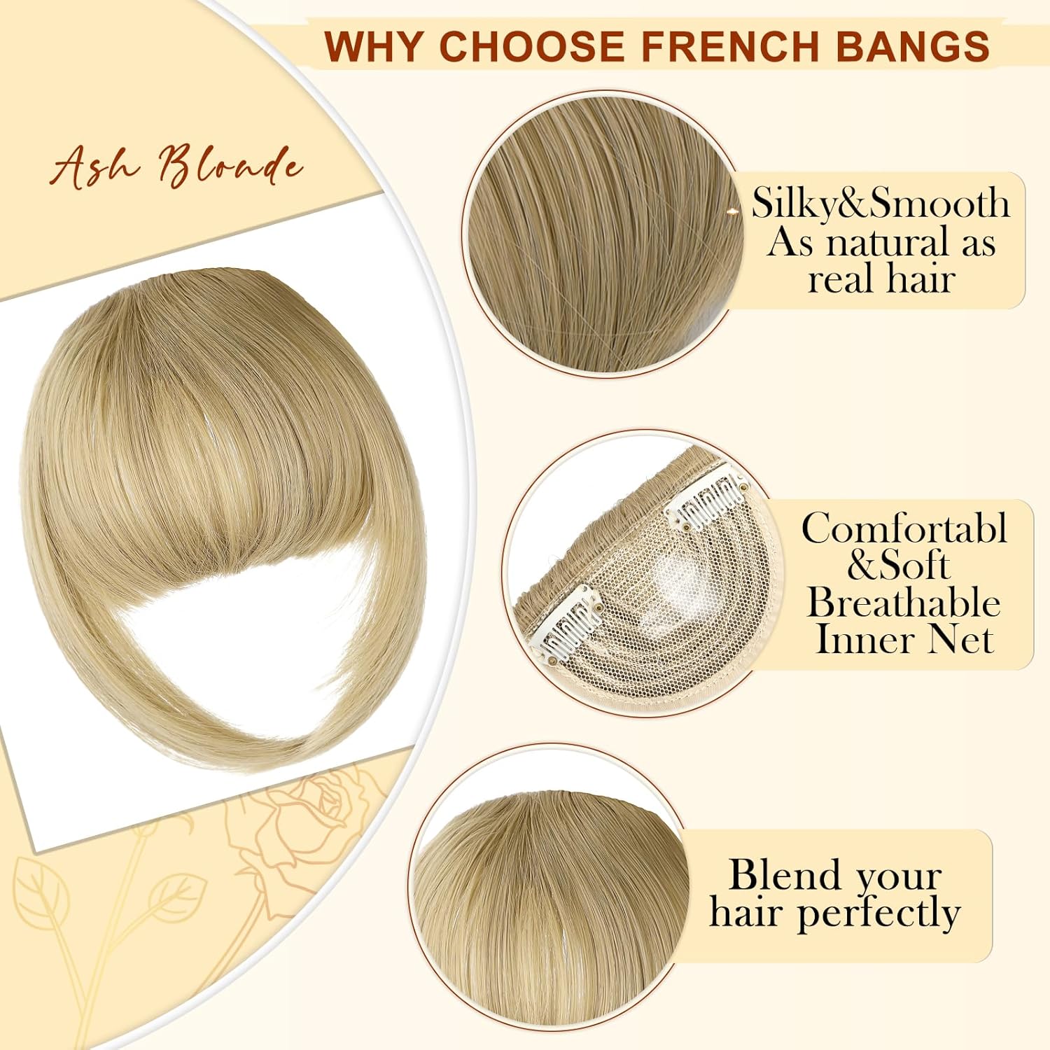 - High Quality Clip-in Bangs: Synthesis hair clip in bangs,shiny,soft and fluffy as your own hair.Creating the most lustrous and as realistic natural effects. Bangs hair clip-in Hair extensions can be curled, straightened or Trimmed into other styles as you like.
