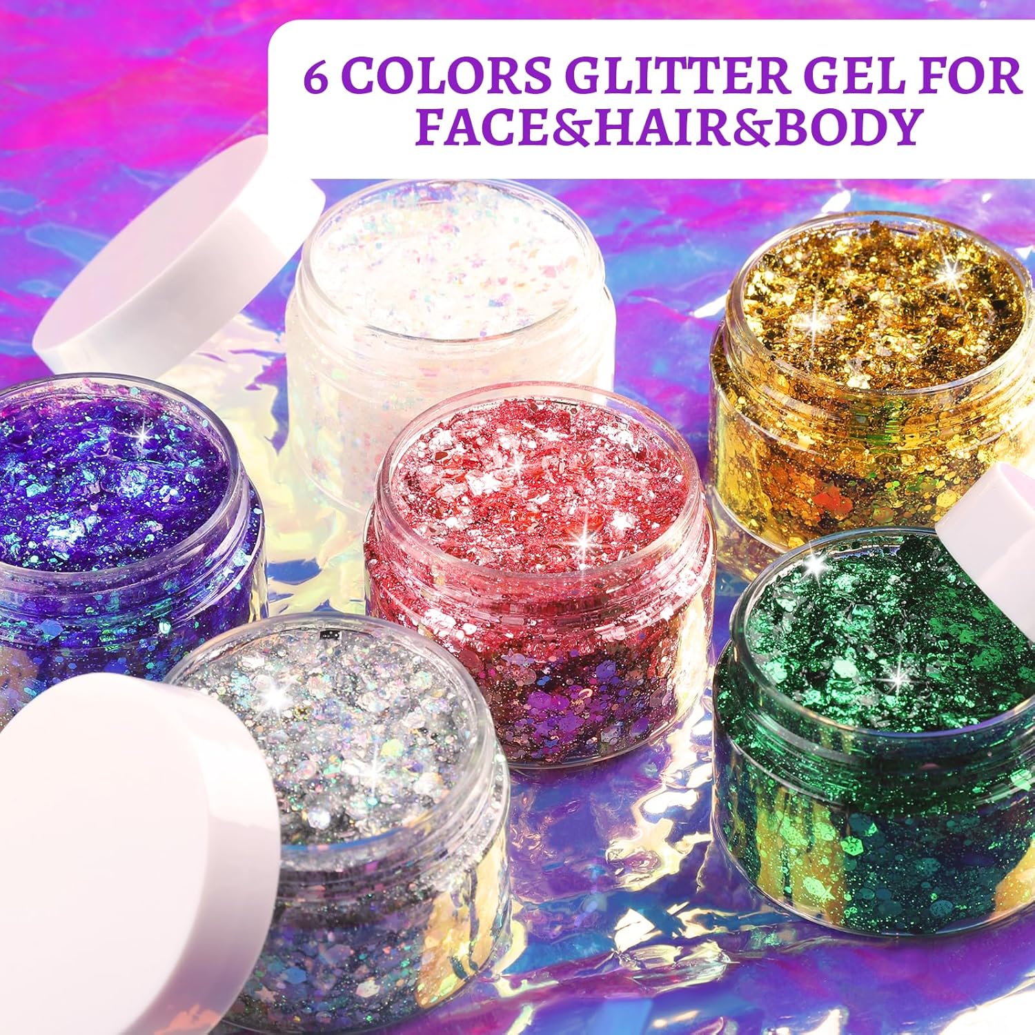 - Applicable for variable occasions: 6-Color body glitter gel set offers a diverse range of colors and themes. Whether you're heading to a concert, a wedding, or a night out with friends, you can easily add a touch of sparkle to your look. This set has everything you need to sparkle and shine. Whether you're getting ready for a special event or simply want to add a touch of sparkle to your everyday look, this versatile set is a must-have addition to your beauty.