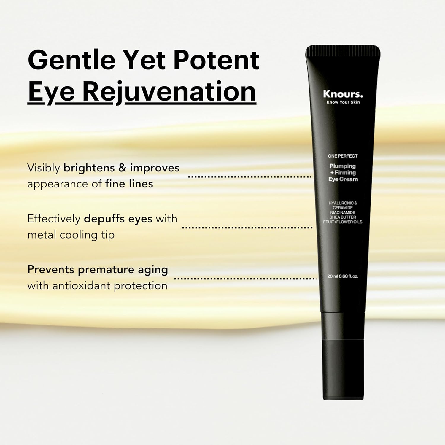 Knours. One Perfect Firming + Plumping Eye Cream with Hyaluronic & Ceramide Niacinamide Shea Butter Fruit + Flower Oils for a refreshed, Smooth Look, New & Improved Formula 20ml/0.68 fl. oz.