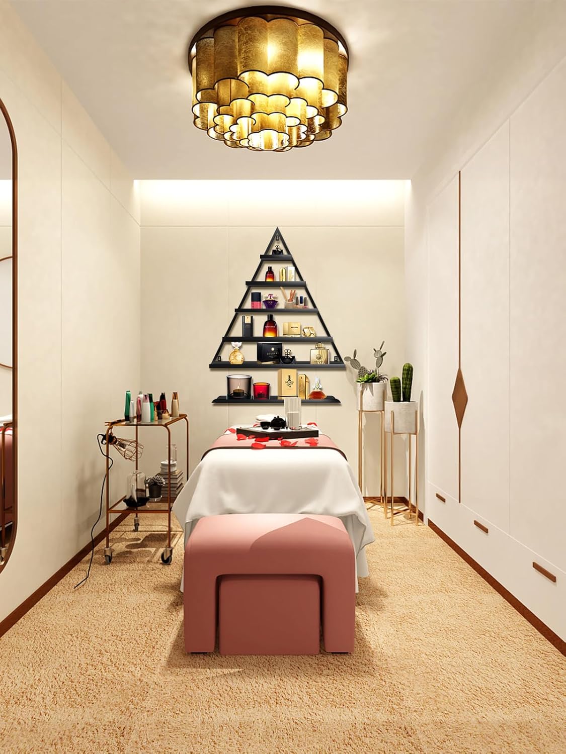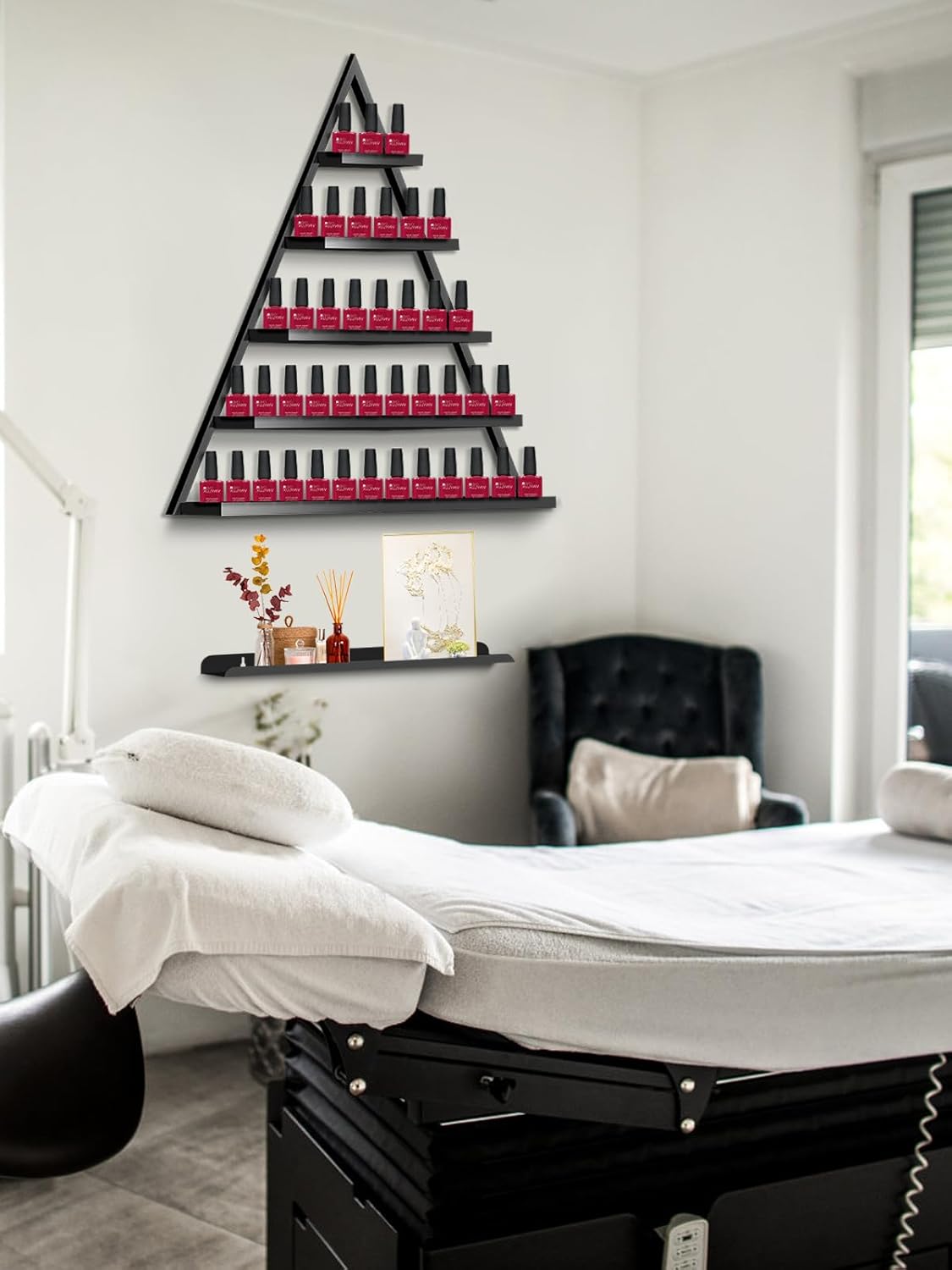 - 【Multi Function】: The triangular shelves are not only suitable for nail salons but also for home use, spa, and shop, perfect for interior decoration, do not take up much space and aesthetically pleasing, can be used to accommodate kinds of items like cosmetic bottles, perfume, lipstick, vase, eyeglasses, photo frame, etc.