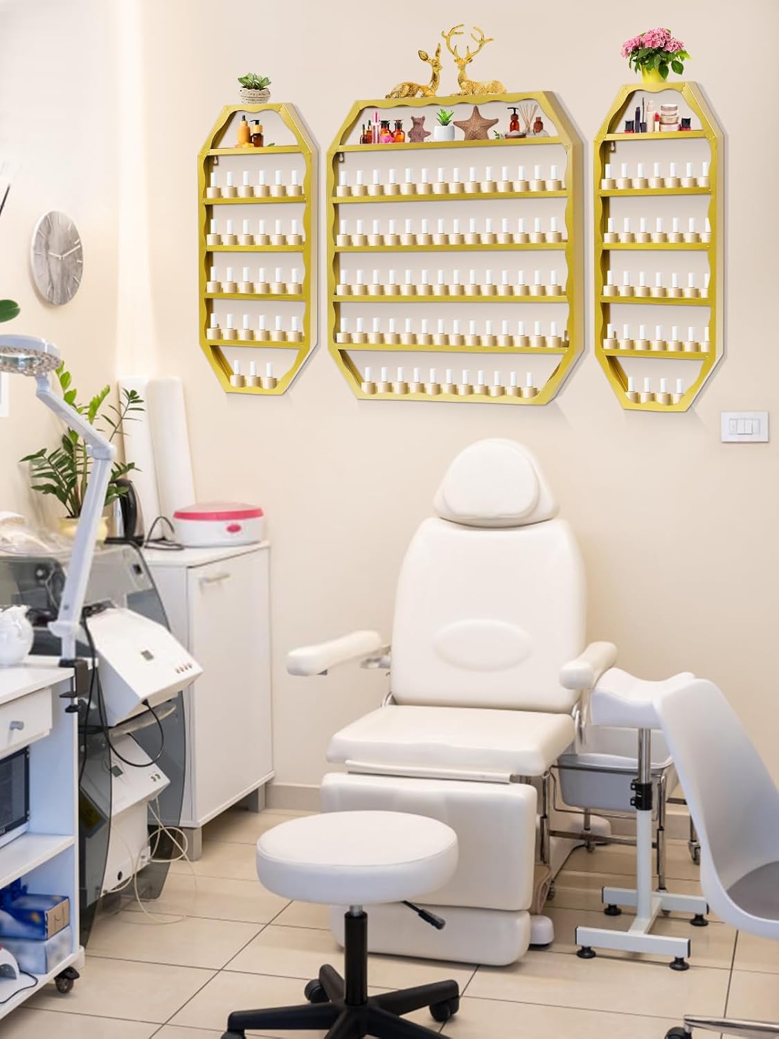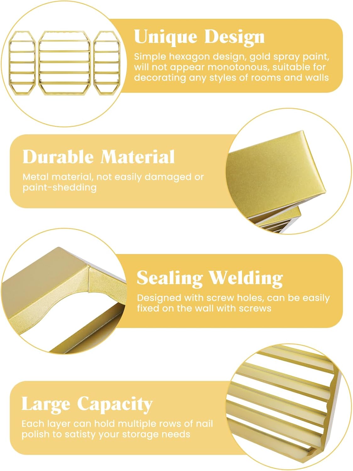 EBANKU Hexagon Nail Polish Racks Heavy Duty Nail Shelfs for Wall Gold Nail Polish Display Rack Cosmetic Display Cases Nail Bottles Organizer Wall Shelf for Home Spa Nail Salon