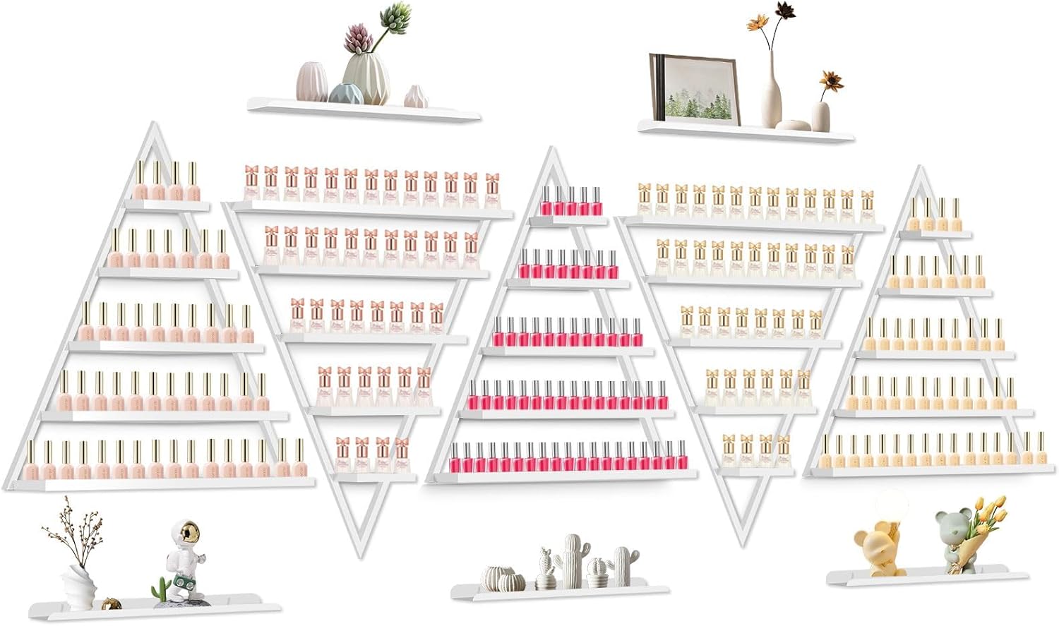 - 【Large Capacity & Save Space】: Simple triangle and multi-layer design to meet both of your aesthetic and storage needs. Each tier can hold two rows of nail polish, making storage convenient and help you save lots of space and time. Reasonable use of wall space, no more worrying about messy table.