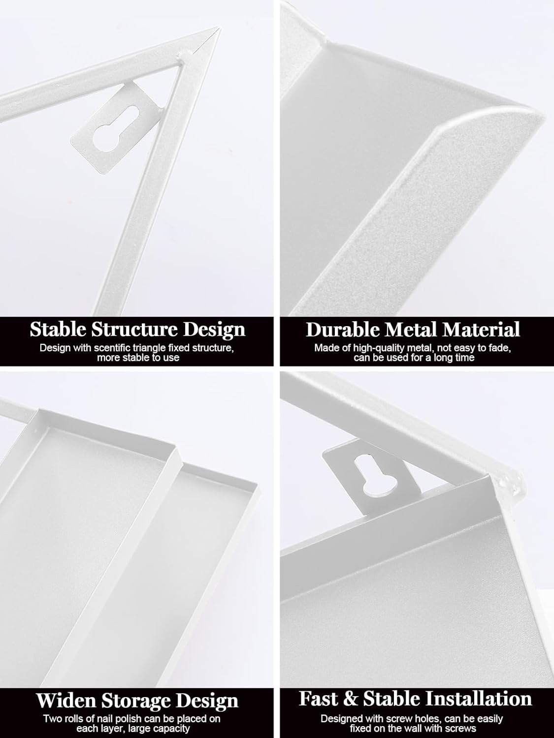 - 【Multi Function】: The triangular shelves are not only suitable for nail salons but also for home use, spa, and shop, perfect for interior decoration, do not take up much space and aesthetically pleasing, can be used to accommodate kinds of items like cosmetic bottles, perfume, lipstick, vase, eyeglasses, photo frame, etc.