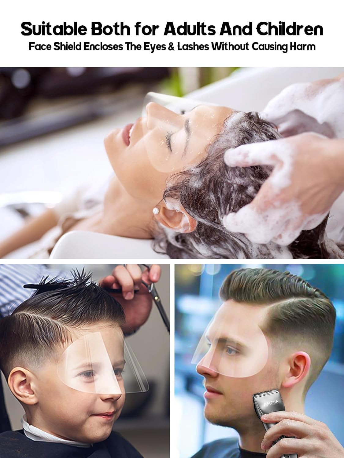 - Facial Protection & Easy to Use: Face Visors can protect clients' face when using hairspray or perfumes, trimming bangs, hot hair coloring. Suitable for both home and salon use. Just clean the forehead, remove the white adhesive tap, adhere to face, just above the eyebrows and remove from face and dispose of when done.