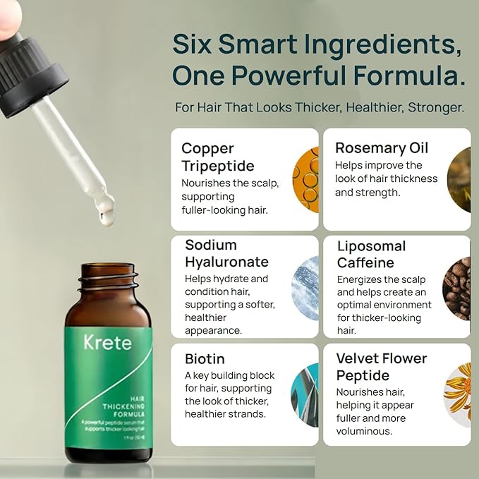 Krete Hair Thickening Formula – Supports Thicker-Looking Hair for Men – 1 fl oz