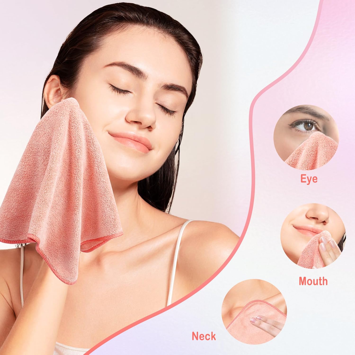 - Durable makeup washcloths: Our compact and lightweight makeup microfiber towel is perfect for travel or daily use. It easily fits into your makeup bag, gym bag, allowing you to enjoy effortless makeup removal wherever you go. Each makeup cloth also comes with a hanging loop for easy placement and quick drying for easy cleaning