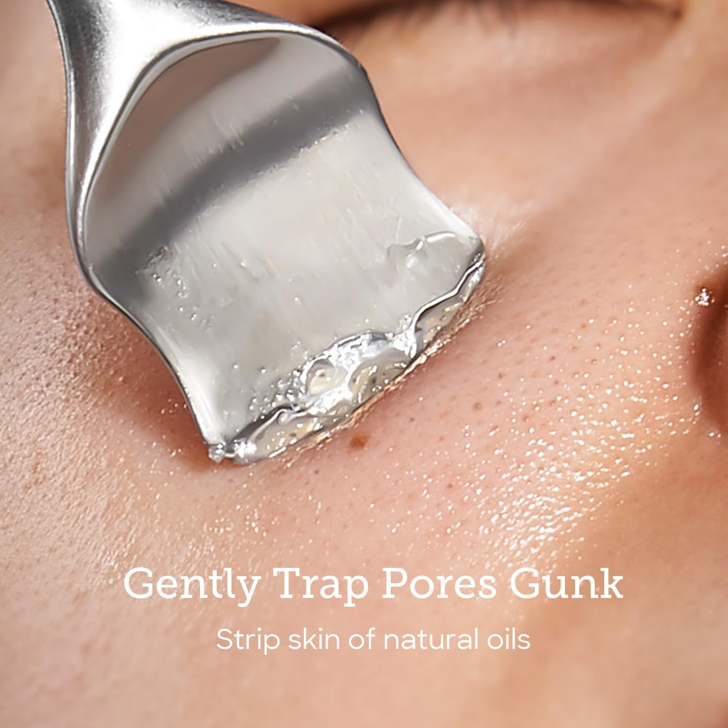 - Pore pre tool: Use to unclog pores gently without harsh chemicals that can strip skin of natural oils. The smaller end for use on and around nose and the larger end for use on chin and forehead