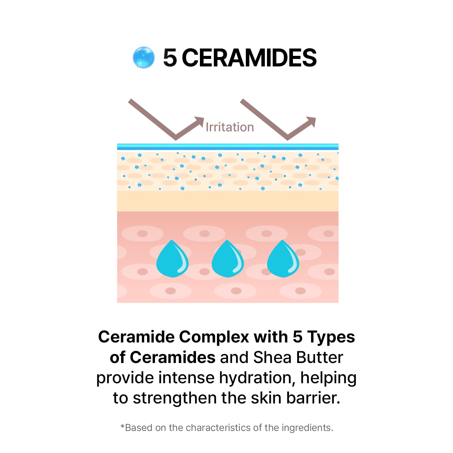- [Moisturizing Ingredients Carefully Selected] Formulated with only essential ingredients, including olive squalane—known as a moisturizer similar to human sebum—five types of ceramides, shea butter, and eight types of hyaluronic acid for deep hydration.