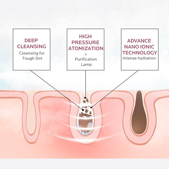 - Nano Ionic Steam for Deep Pore Cleansing: The upgraded face steamer uses nano-ionic technology to produce ultra-fine steam that penetrates deep into the skin, loosening dirt, oil, and blackheads. Pair it with the silicone cleansing brush to gently exfoliate, remove buildup, and reveal a cleaner, smoother complexion