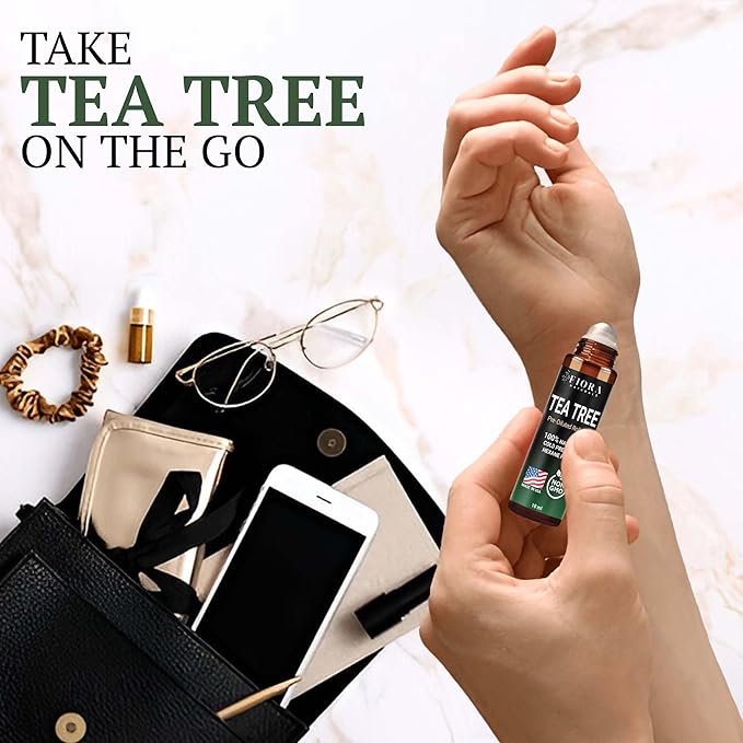 Fiora Naturals Tea Tree Oil Roll On - 100% Natural Tea Tree Essential Oil for Skin, Face, Acne, Nails, Cuticles, Scalp & Aromatherapy Wellness