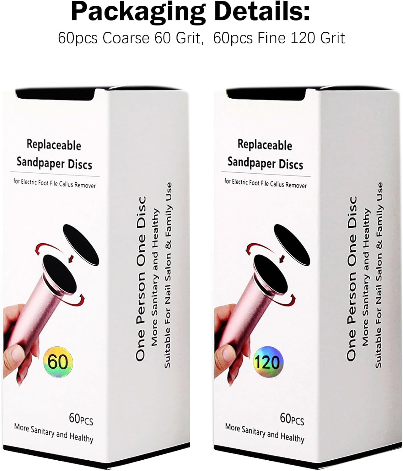 120pcs Replaceable Sandpaper Discs 60 Grit 120 Grit, Thick Self-Adhesive Replacement Sandpaper Refill Sanding Pads for Electric Foot Callus Remover Feet Sander (60 Grit +120 Grit)
