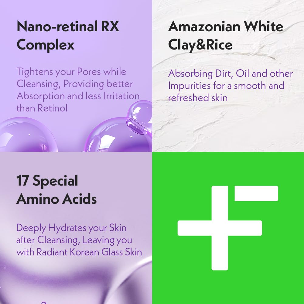 - POWERED BY 17 AMINO ACIDS & RETINAL RX COMPLEX: Boost skin health with a unique blend of amino acids and Retinal RX, delivering nourishment and supporting your skin while deeply cleansing.