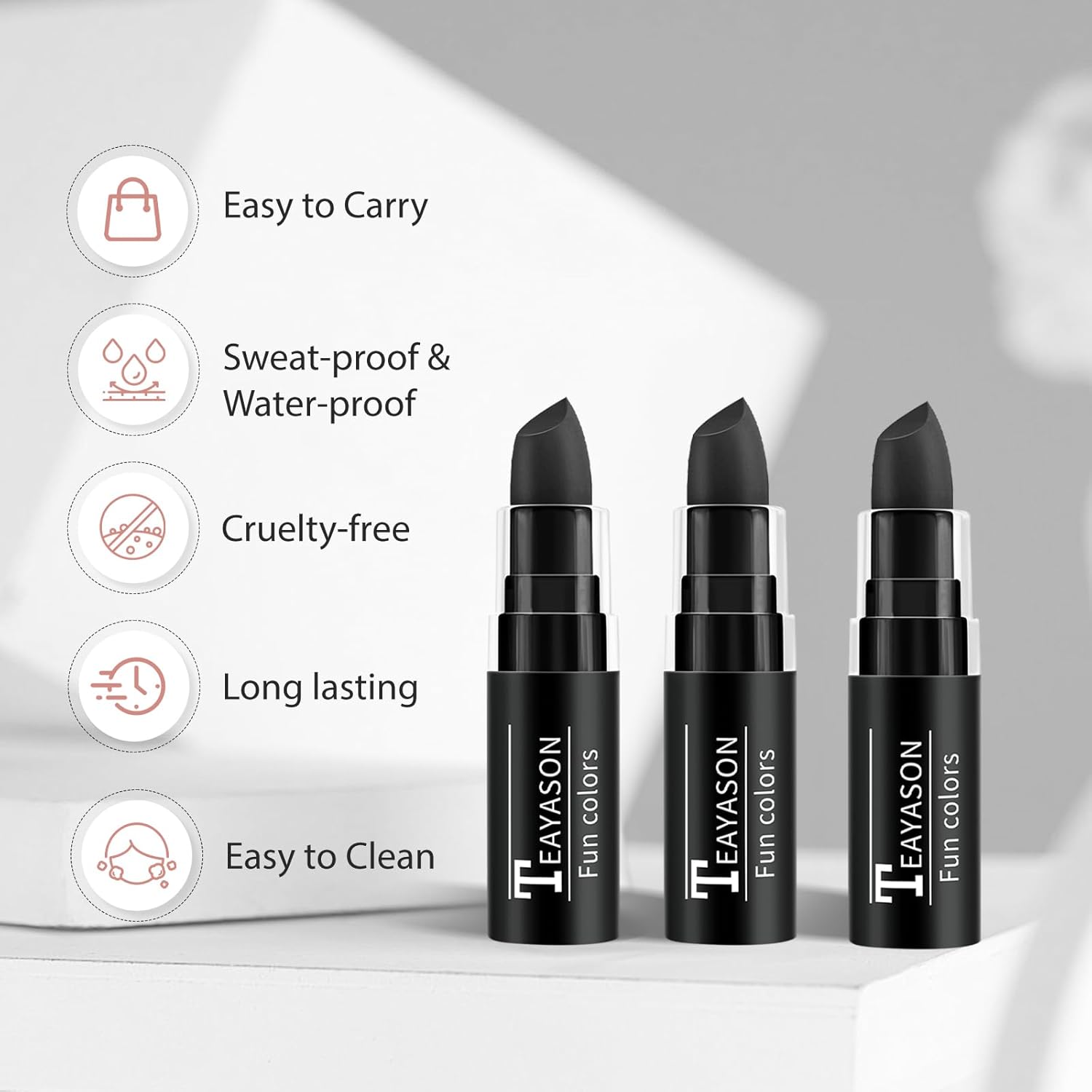 - BLACK HALLOWEEN MAKEUP --- The black face and body paint has a soft and smooth texture, and the stick design makes it easy to rotate and apply, providing a velvet matte full coverage effect, which can not only be used as a face paint, but also as a black foundation base or black lipstick to create a variety of black makeup, black face makeup