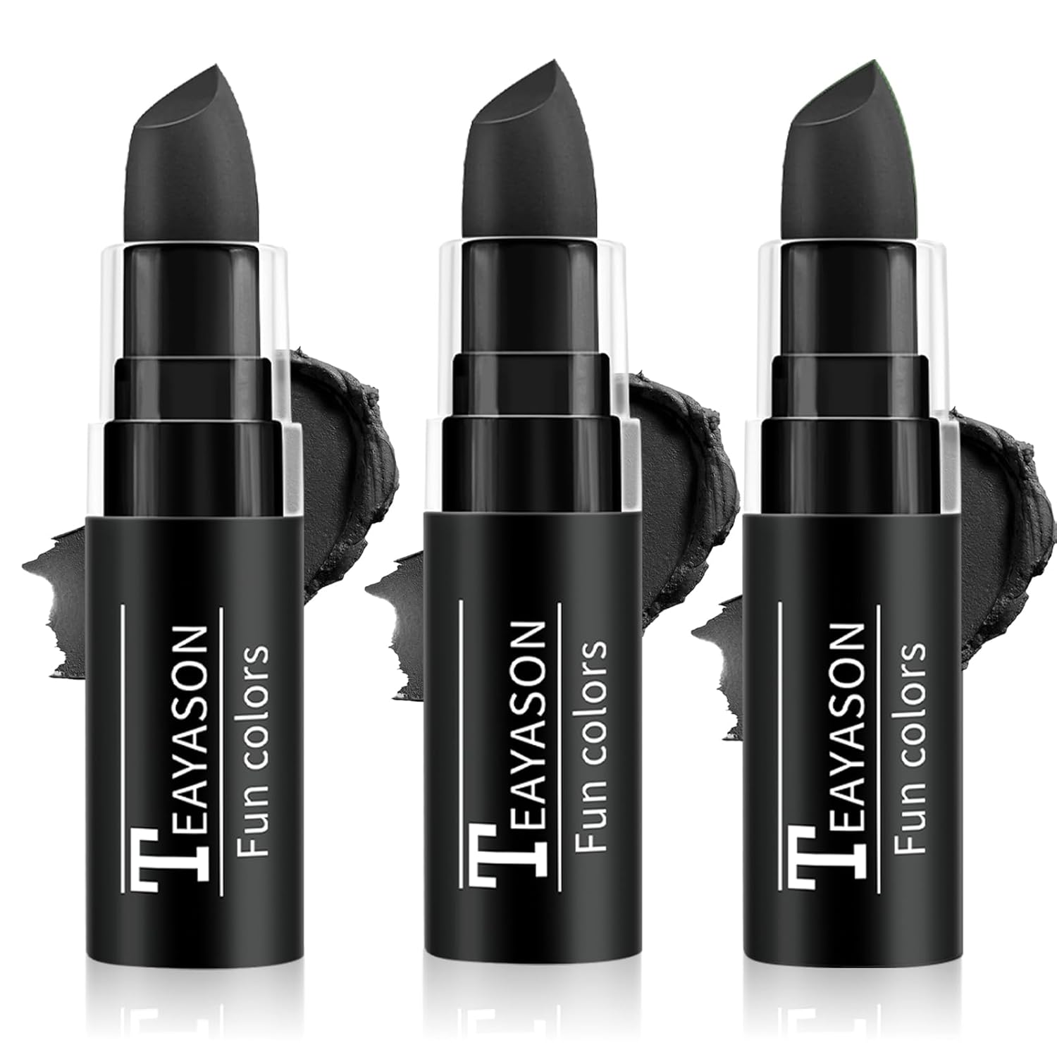 3PCS Eye Black Stick Face Body Paint Stick, Matte Black Lipstick, Long Lasting Waterproof Face Makeup for Halloween Zombie Clown Vampire Skeleton Skull Joker Cosplay Makeup Football Baseball Sport