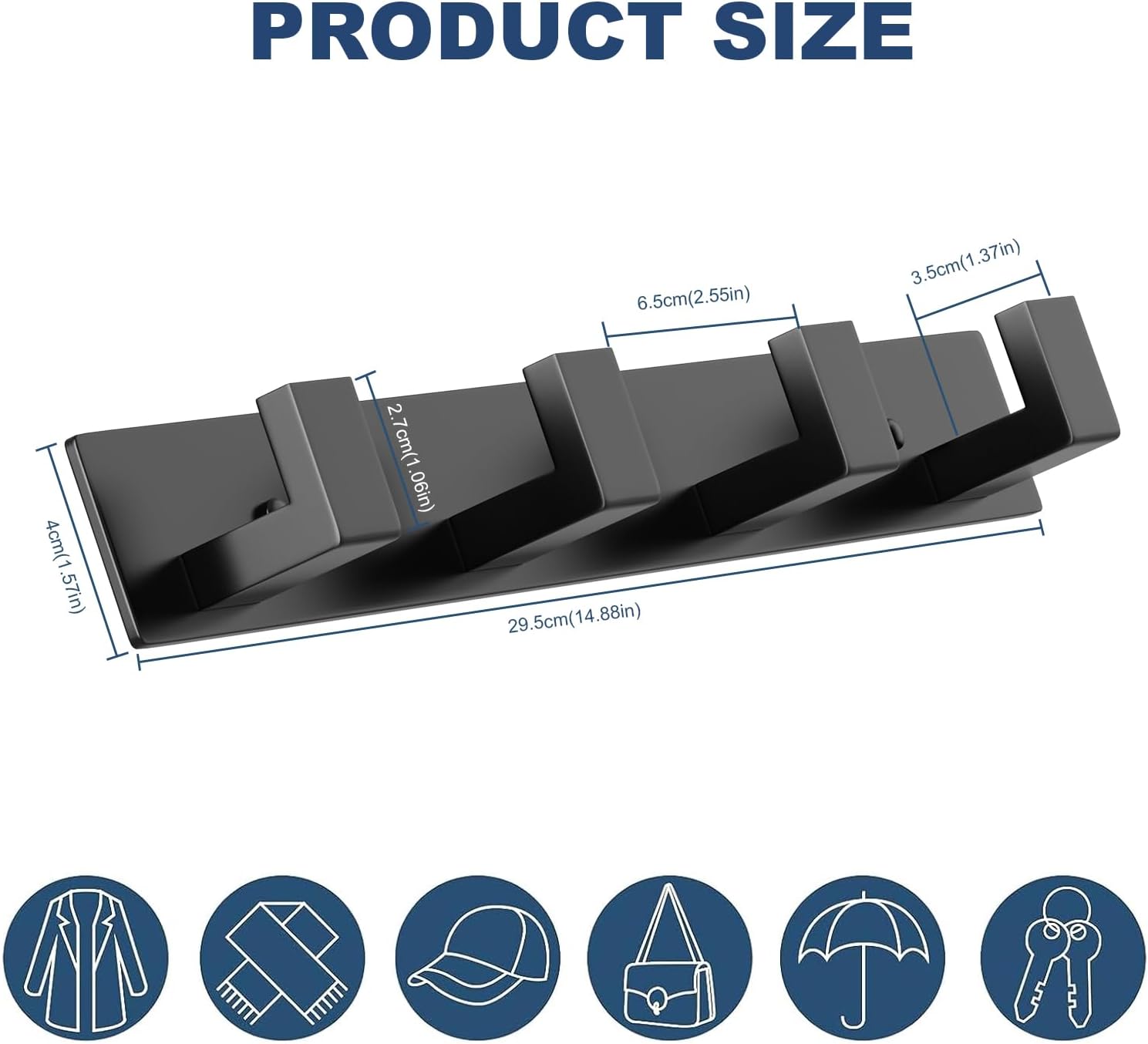 PMMASTO Coat Rack Wall Mount, Coat Hooks Wall Hooks for Hanging, Stainless Steel Coat Hanger Towel Hooks for Bathrooms, Coat Rack Hat Rack (Black 4 Hooks, 1 Pack)